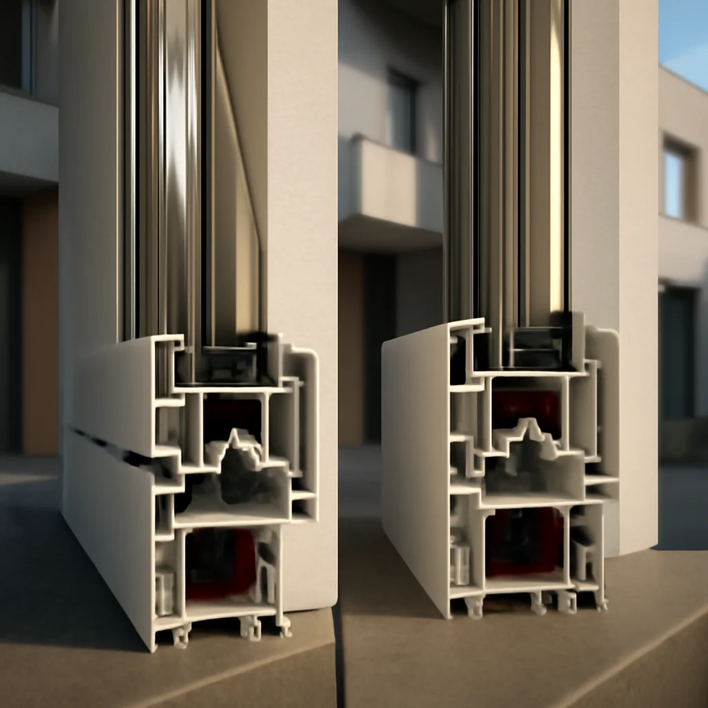 Diferența constă în numărul de cavități goale din interiorul profilului. Un profil cu 7 camere oferă o izolare termică și acustică superioară datorită volumului mai mare de aer stagnant.