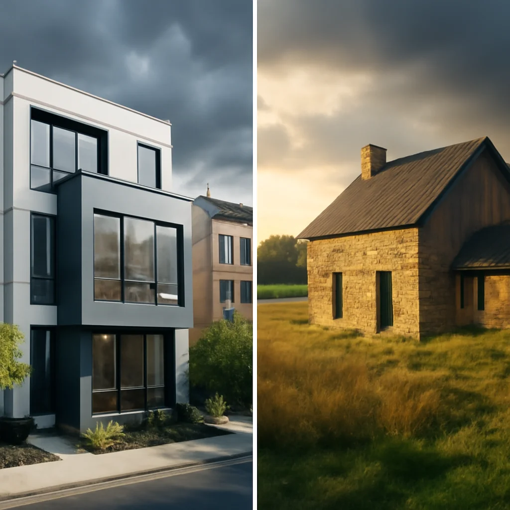 Proiectarea unei case de oraș este limitată de reglementările stricte de urbanism și de dimensiunile reduse ale terenului, în timp ce proiectarea unei case la țară oferă mai multă libertate, dar trebuie să țină cont de protejarea mediului și de accesul la utilități. Alegerea depinde de prioritățile legate de spațiu, intimitate și accesibilitate.