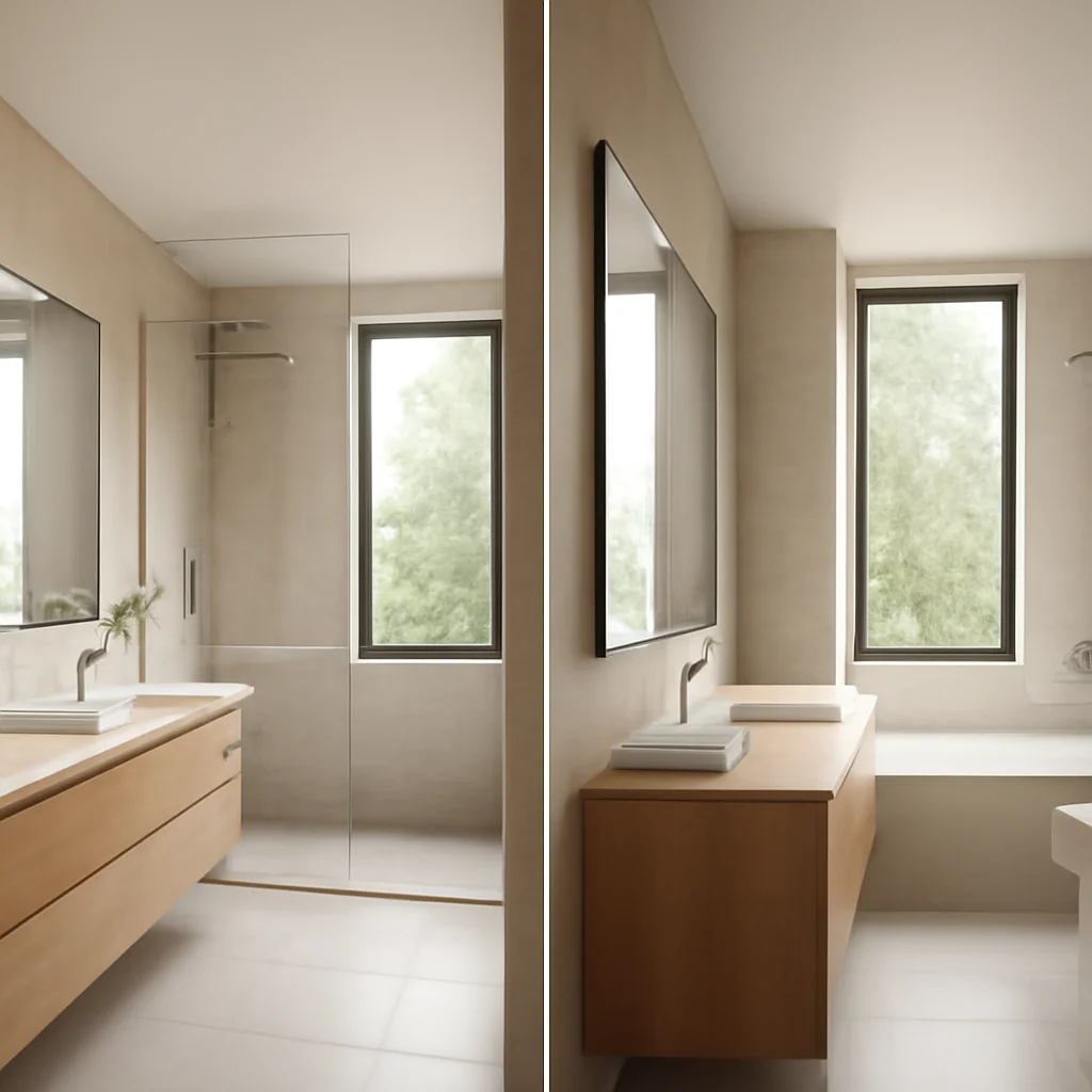 O singură baie este adesea potrivită pentru locuințele de dimensiuni reduse, precum apartamentele studio sau garsonierele, sau pentru familiile formate din una sau două persoane. Este o soluție economică și compactă.