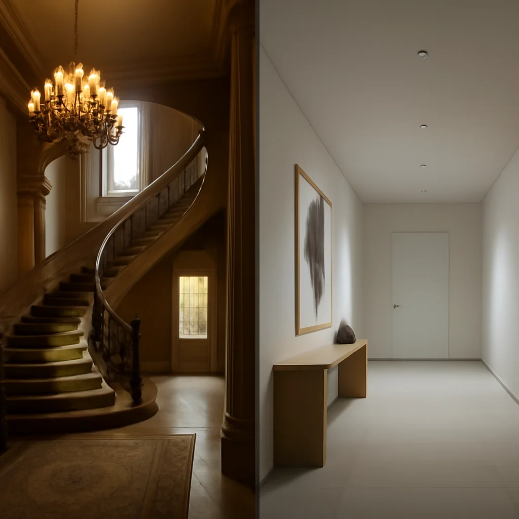 1. Care sunt principalele diferențe între un hol mare și unul minimalist?