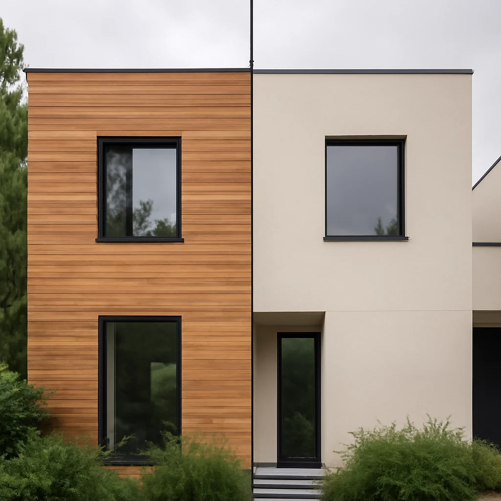 Comparativ cu fațada din lemn, o fațadă tencuită este, de obicei, mai ieftină și mai ușor de executat. Totuși, performanța termoizolantă este, în general, inferioară, necesitând utilizarea unui sistem de izolare termică suplimentar (polistiren expandat sau vată minerală). Întreținerea constă în curățarea periodică și repararea fisurilor sau a zonelor deteriorate, cu un cost relativ redus.