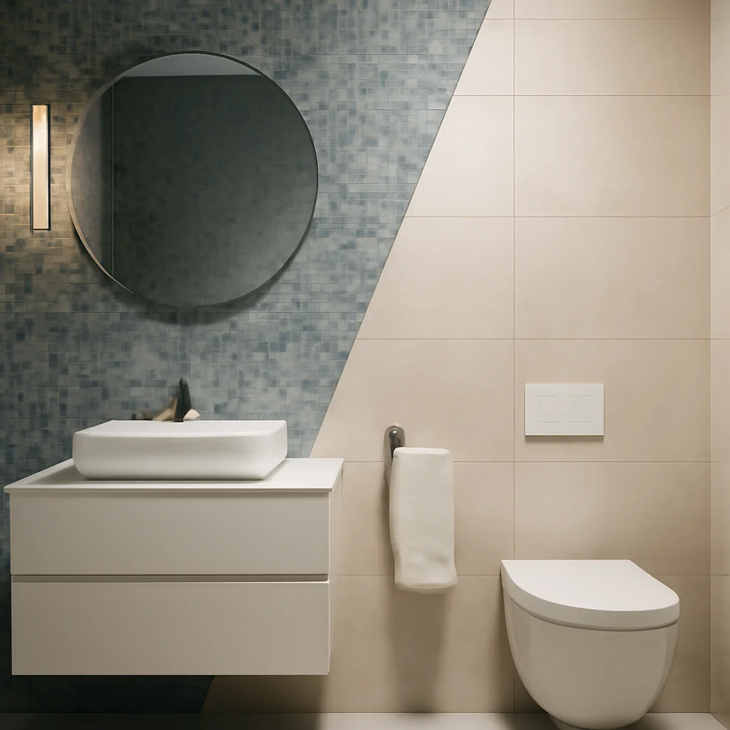 1. Care este principala diferență între mozaic și gresie mare format pentru baie?