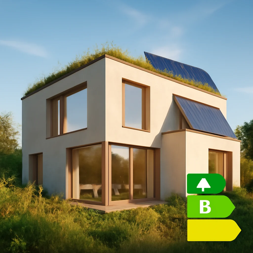 Clasa energetică B, deși mai puțin performantă decât A, rămâne totuși foarte bună, cu un consum anual specific de energie primară între 51 și 100 kWh/m². Diferențele față de clasa A se referă, în general, la utilizarea unor materiale de izolație termică ușor inferioare, grosimi mai mici ale izolației, ferestre cu geam termopan dublu sau triplu cu performanțe ușor reduse și sisteme de încălzire și răcire mai puțin eficiente. Totuși, o clădire certificată energetic B poate include sisteme de panouri solare pentru producerea de apă caldă menajeră sau energie electrică, reducând dependența de sursele convenționale. Conform SR EN ISO 13786, calculul performanței energetice ține cont de factori precum climatul local, orientarea clădirii, tipul de utilizare și comportamentul utilizatorilor.