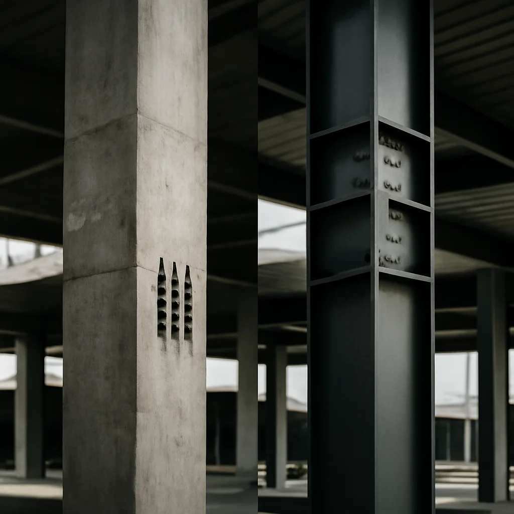 1. Care sunt principalele diferențe între stâlpii din beton armat și cei metalici?