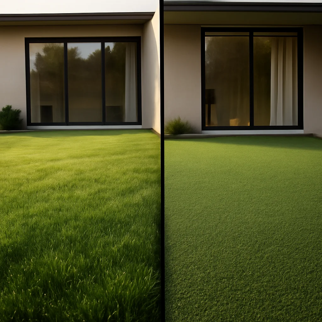 O comparație directă între gazonul natural și cel artificial relevă diferențe semnificative în ceea ce privește costurile, întreținerea și impactul ecologic. Pe termen scurt, gazonul artificial implică o investiție inițială mai mare, dar costurile de întreținere sunt mult mai mici. Pe termen lung, costurile totale pot fi similare, în funcție de durata de viață a gazonului artificial și de costurile cu înlocuirea acestuia. Durata de viață a gazonului artificial de calitate variază între 8 și 15 ani, în timp ce gazonul natural poate dura ani de zile dacă este întreținut corespunzător.