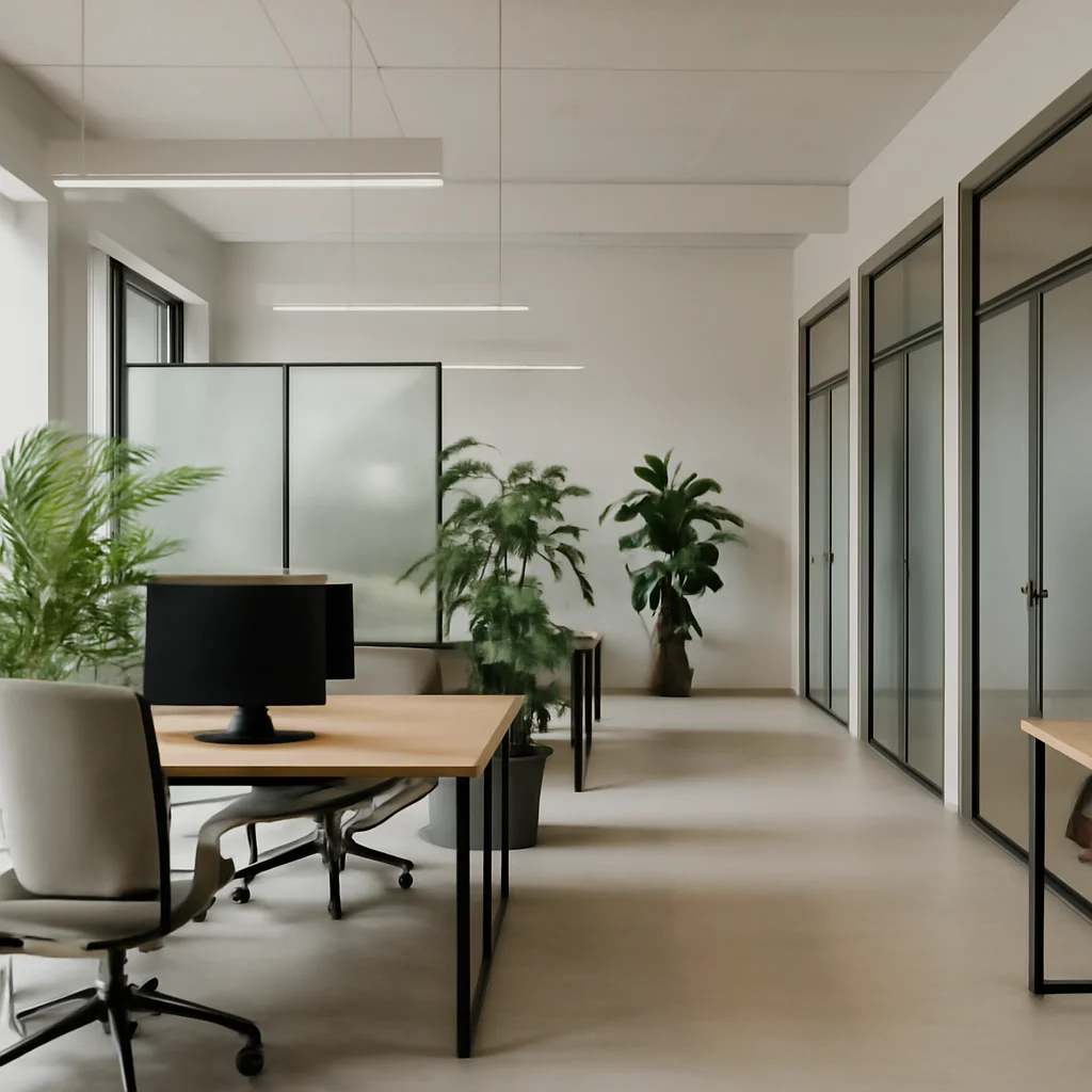 Indiferent de alegerea între open space și camere separate, iluminatul, acustica și ergonomia sunt elemente esențiale pentru crearea unui mediu de lucru sănătos și productiv. Iluminatul adecvat, conform SR EN 12464-1:2011, trebuie să asigure un nivel de iluminare suficient pentru desfășurarea activităților, fără a provoca oboseală vizuală sau disconfort. Pentru activitățile care necesită precizie, cum ar fi citirea documentelor sau lucrul la calculator, se recomandă un nivel de iluminare de minimum 500 lucși.