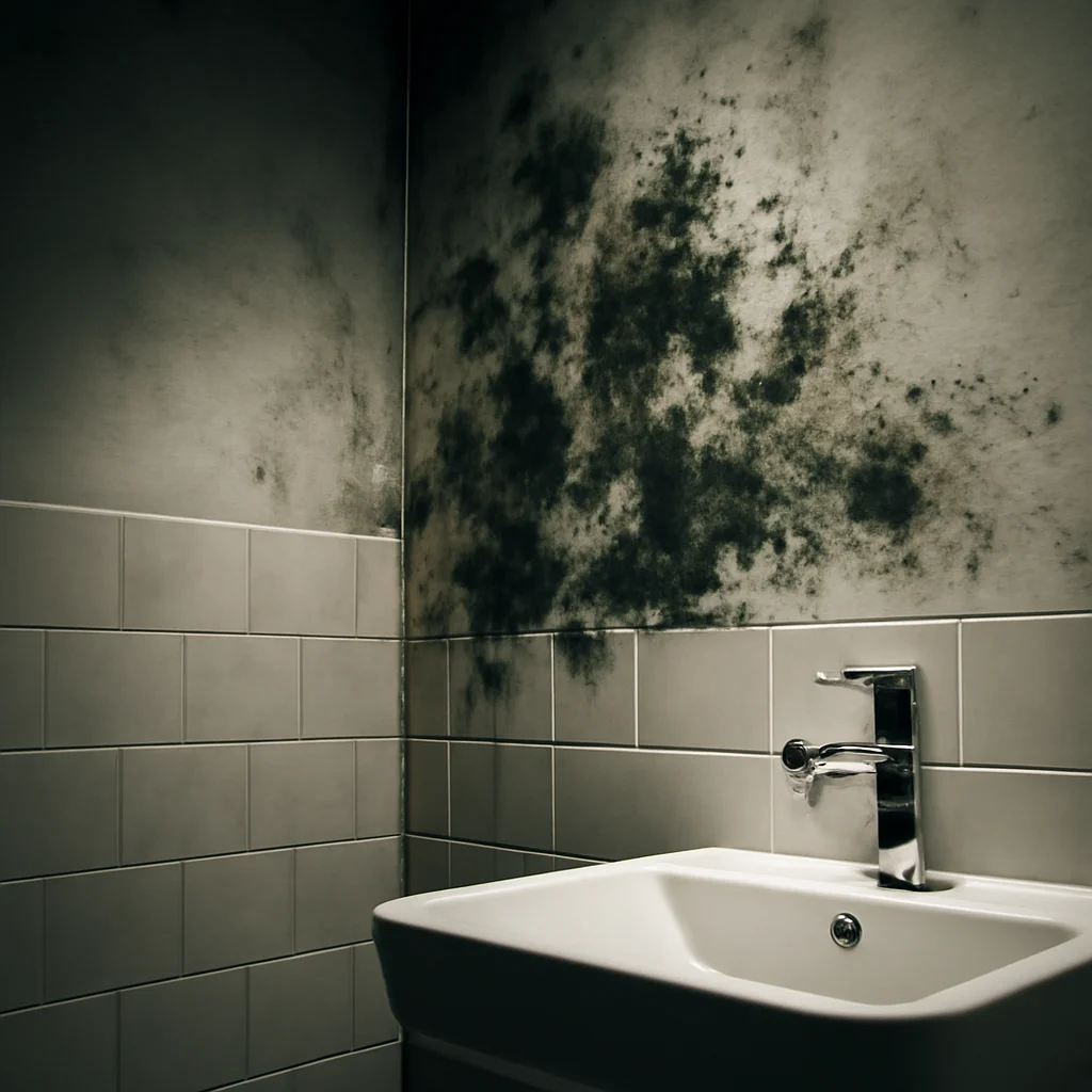 Mucegaiul se manifestă prin pete vizibile, de obicei negre, verzi sau maro, și uneori prin mirosuri neplăcute. Verifică zonele cu umiditate ridicată, precum băi, bucătării și pereții exteriori.