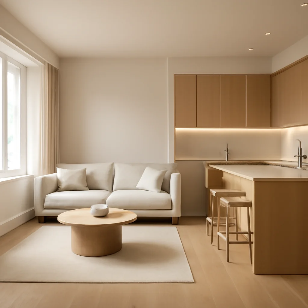 Un proiect recent realizat în București, pentru un apartament cu două camere, a inclus un living cu bucătărie deschisă de 32 metri pătrați. Soluția adoptată a fost o zonă de living cu o canapea modulară, care putea fi transformată în pat suplimentar, o masă pliabilă și un corp de iluminat cu dimmer, pentru a crea o atmosferă relaxantă. Zona de bucătărie a fost delimitată vizual printr-o insulă centrală, care servea și ca masă de luat masa, și printr-o zonă de depozitare integrată în perete. Costurile pentru amenajarea acestui spațiu s-au situat între 8.000 și 12.000 euro, incluzând mobilierul, electrocasnicele și finisajele.