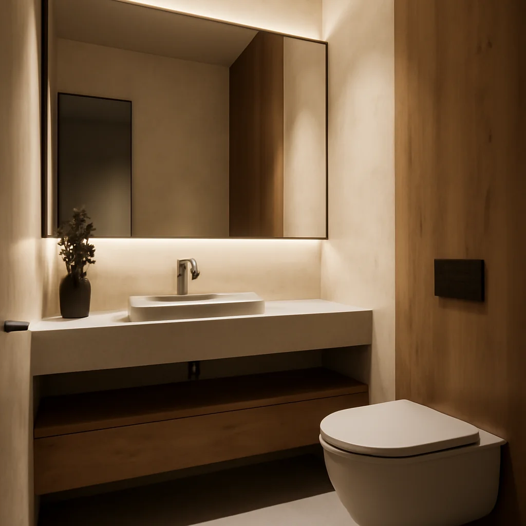 O baie de serviciu la parter poate compensa lipsa unei băi la etaj, oferind o soluție practică pentru oaspeți, copii sau persoane cu mobilitate redusă. De asemenea, poate fi integrată în zone de relaxare, creând un flux natural între interior și exterior.