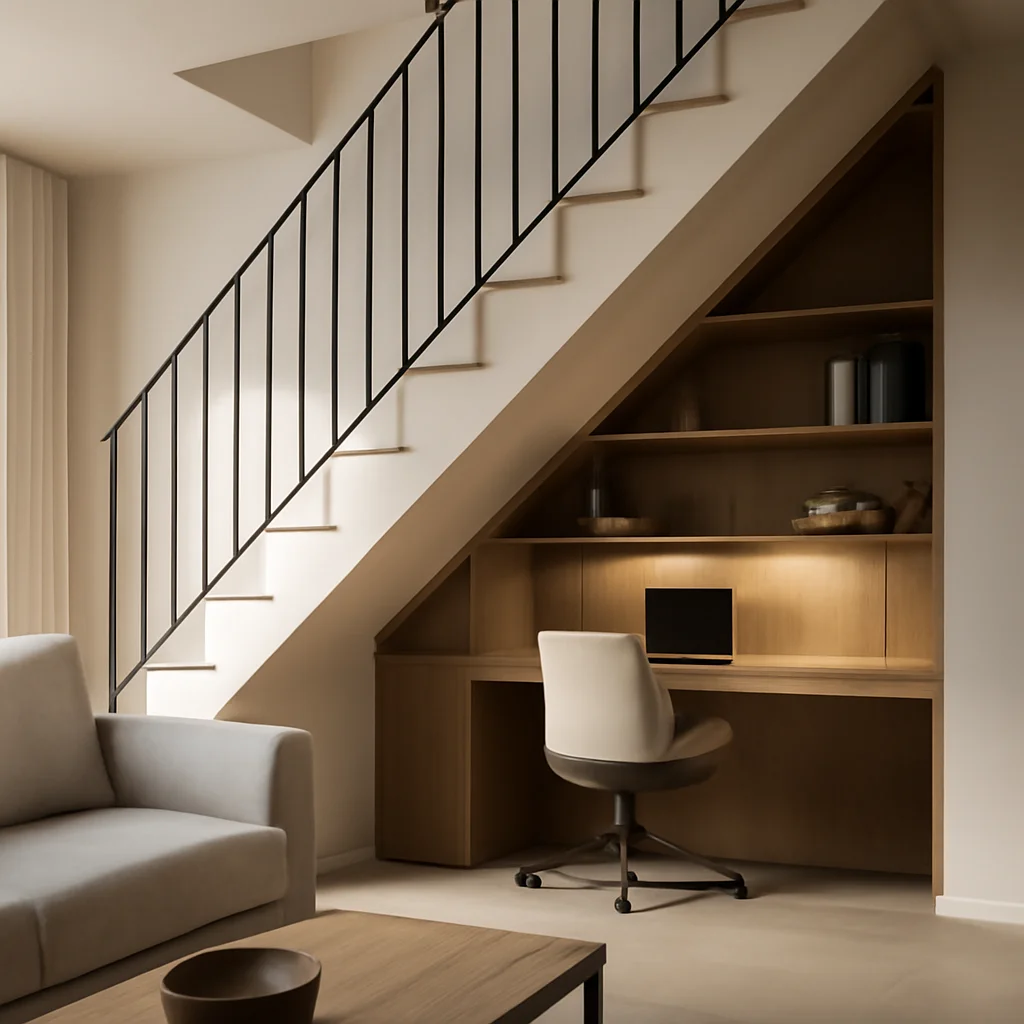 Spațiul de sub scară poate fi transformat în depozitare inteligentă, birou, colț de lectură sau chiar o baie de serviciu compactă. Planificarea atentă și execuția adecvată sunt esențiale pentru a adăuga funcționalitate și estetică.