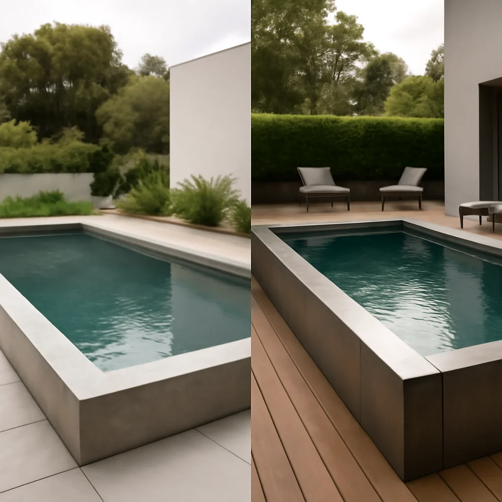 1. Care este diferența principală între o piscină din beton turnat și una din panouri metalice?