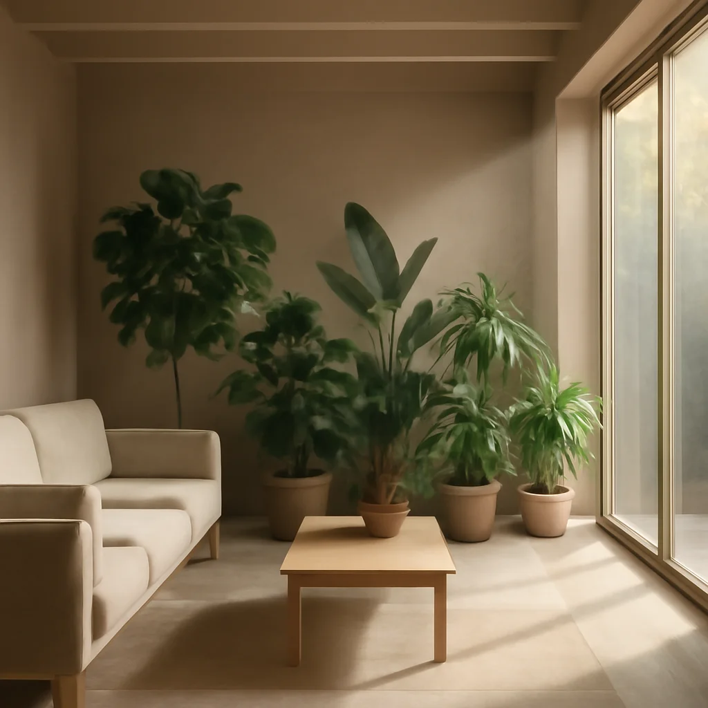 Plantele de interior nu sunt doar decorative, ci și eficiente în purificarea aerului. Prin procesul de fotosinteză, plantele absorb dioxidul de carbon și eliberează oxigen. În plus, unele plante au capacitatea de a absorbi COV, cum ar fi formaldehida, benzenul și xilenul. Plantele recomandate pentru purificarea aerului includ: Spathiphyllum (Liliu-de-pace), Sansevieria (Limba-soacrei), Chlorophytum comosum (Planta-păianjen), Epipremnum aureum (Pothos) și Dracaena.
