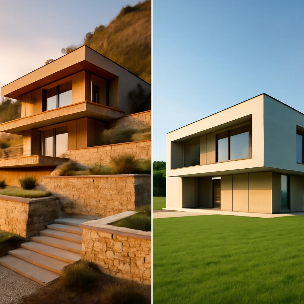 Terenurile la câmpie pot părea mai ieftine inițial, dar pot necesita costuri suplimentare pentru consolidarea solului și drenaj. Terenurile pe deal pot fi mai scumpe la achiziție, dar pot reduce costurile cu drenajul și pot oferi avantaje energetice. Costurile totale depind de studiile geotehnice și de lucrările necesare.