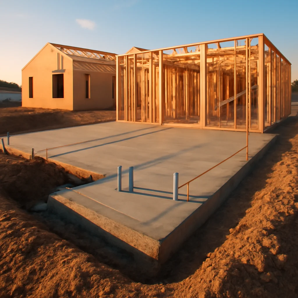 După obținerea autorizației de construire, se pot demara lucrările preliminare, care includ trasarea conturului construcției pe teren, organizarea șantierului și realizarea fundațiilor. Trasarea trebuie efectuată de un inginer topograf autorizat, cu respectarea planurilor de situație din proiectul tehnic. Organizarea șantierului implică amplasarea corectă a utilajelor, a materialelor de construcție și a spațiilor de depozitare, respectând normele de siguranță și protecție a mediului (conform NP 012/2019 – Normativ privind protecția mediului la realizarea investițiilor).