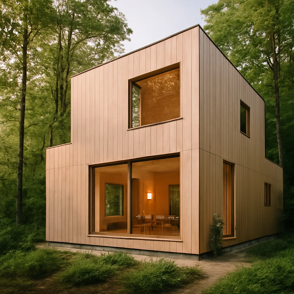 Lemnul certificat FSC este regenerabil, are o amprentă de carbon mai mică decât betonul sau oțelul și oferă o izolare termică și fonică excelentă. De asemenea, este un material ușor, dar rezistent, permițând structuri eficiente.