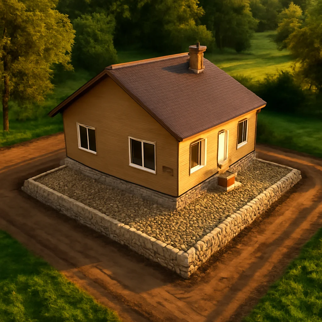 Stratul granular distribuie încărcările clădirii, asigură drenajul apei și protejează fundația de îngheț și dezgheț. O compactare bună previne deplasările și fisurile, oferind o capacitate portantă adecvată.