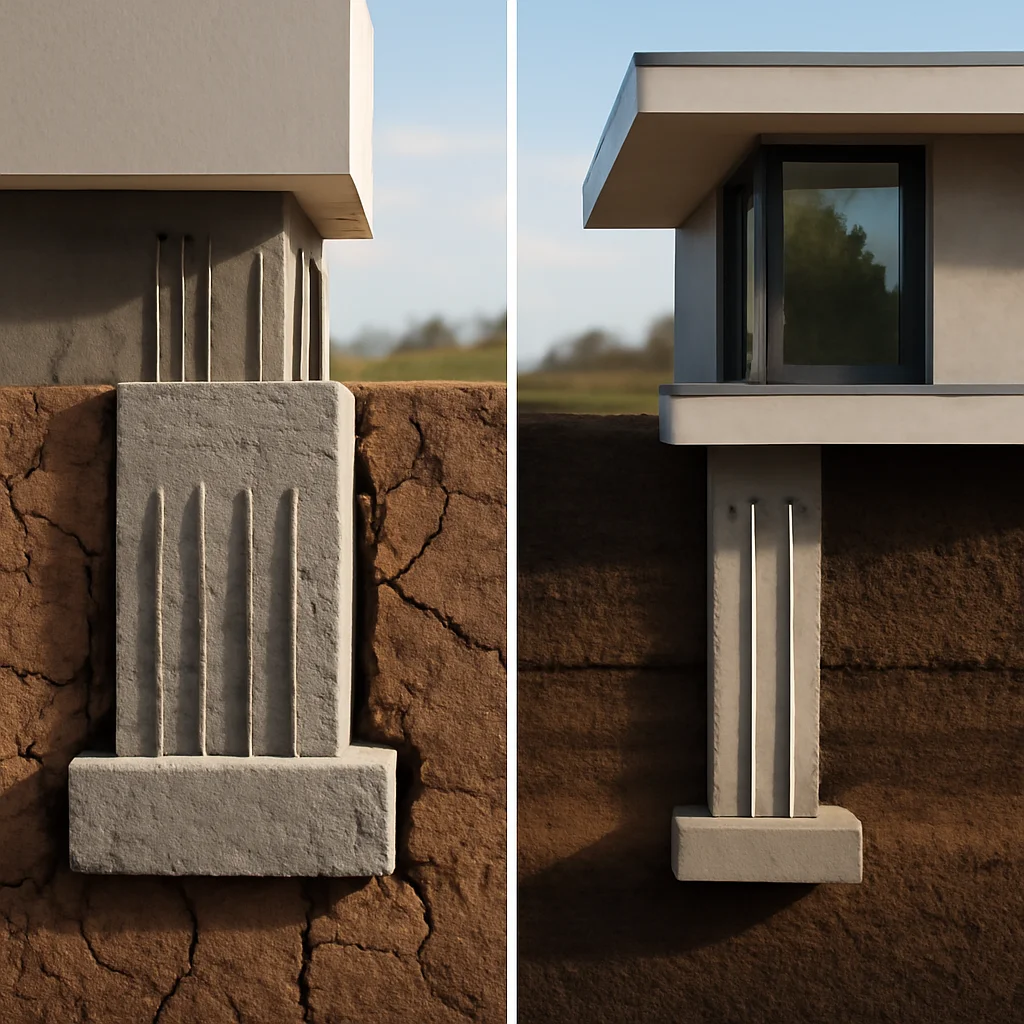 Natura terenului (argilos, nisipos, pietros), încărcările structurale (greutatea construcției, vânt, seism), nivelul apei freatice și clima sunt factori determinanți. Fiecare proiect necesită o analiză specifică a acestor factori.
