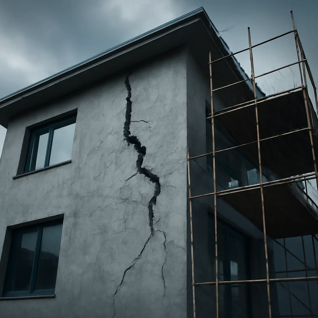 Defectele structurale acoperite includ fisuri semnificative în fundații, deformări ale stâlpilor și grinzilor, sau infiltrații severe care afectează stabilitatea clădirii. Acestea pot compromite siguranța construcției și sunt considerate cele mai grave probleme.
