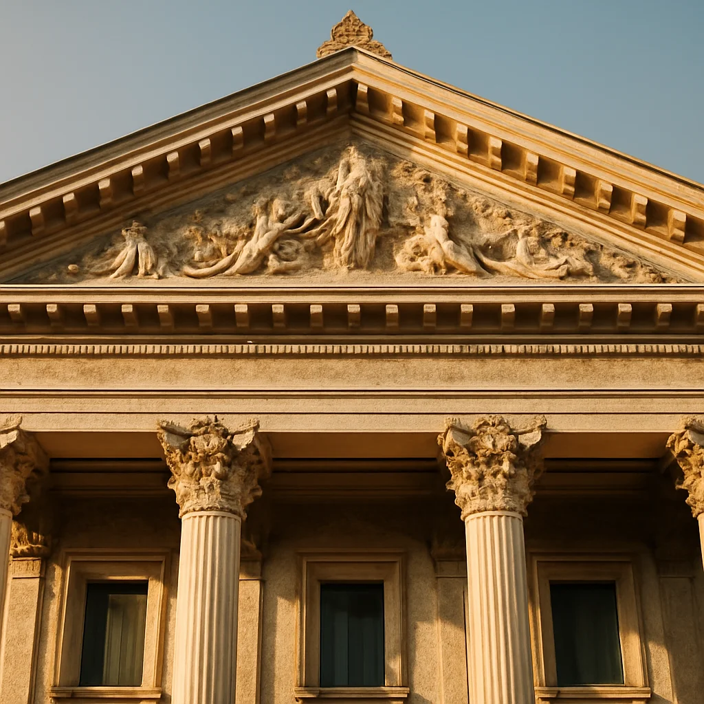 Timpanul este spațiul triunghiular de sub acoperiș, delimitat de cornișă și pantele acoperișului. Este un element structural important, nu doar decorativ, care ajută la distribuirea sarcinilor și protejarea fațadei.