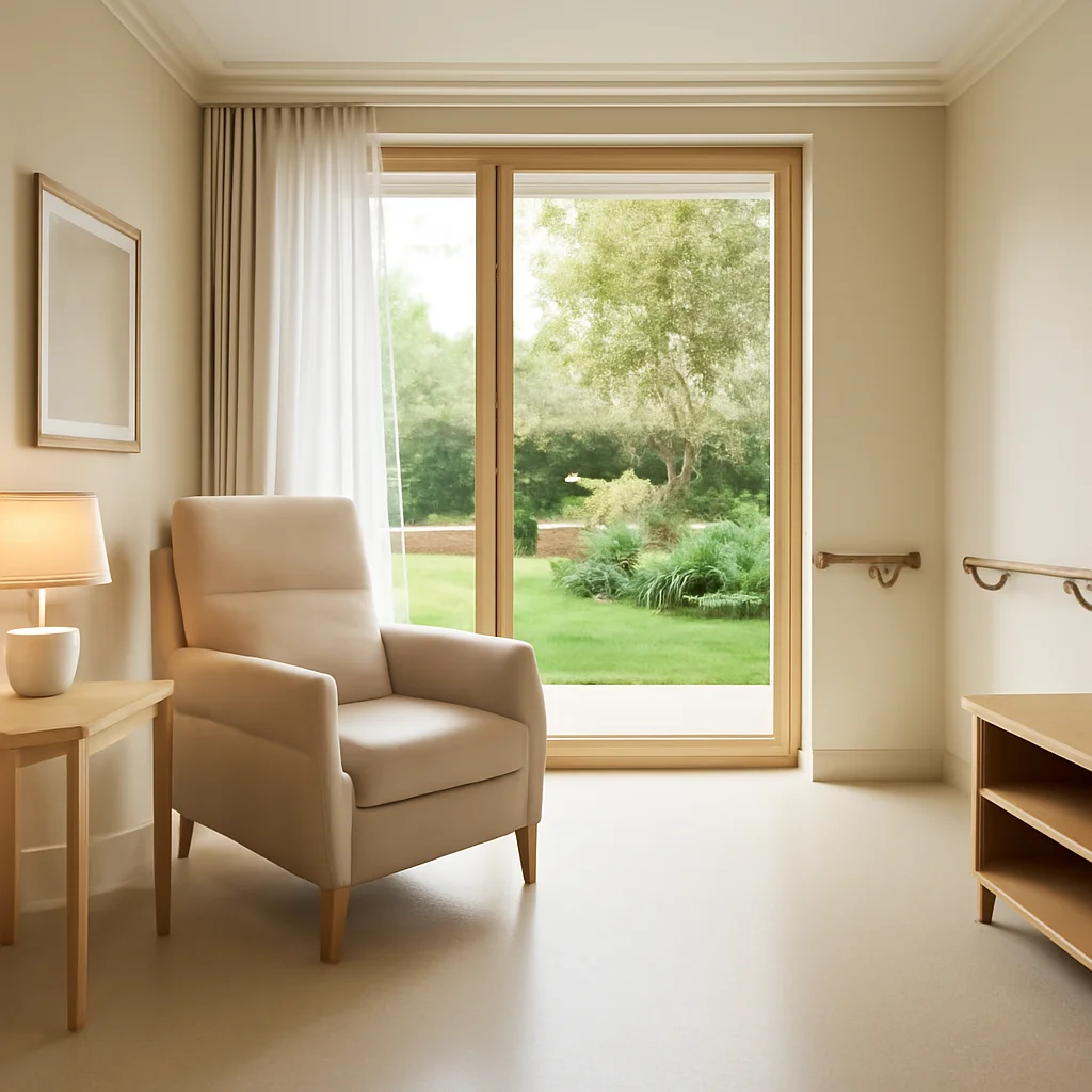 Dormitorul trebuie să fie un spațiu de odihnă și siguranță pentru persoanele vârstnice. Alegerea unui pat cu înălțime adecvată (45-50 cm) facilitează urcarea și coborârea. Instalarea unei saltele confortabile și a unei perne potrivite este, de asemenea, importantă. Plasarea unui telefon și a unei lămpi de veghe lângă pat asigură accesul rapid la ajutor în caz de urgență.