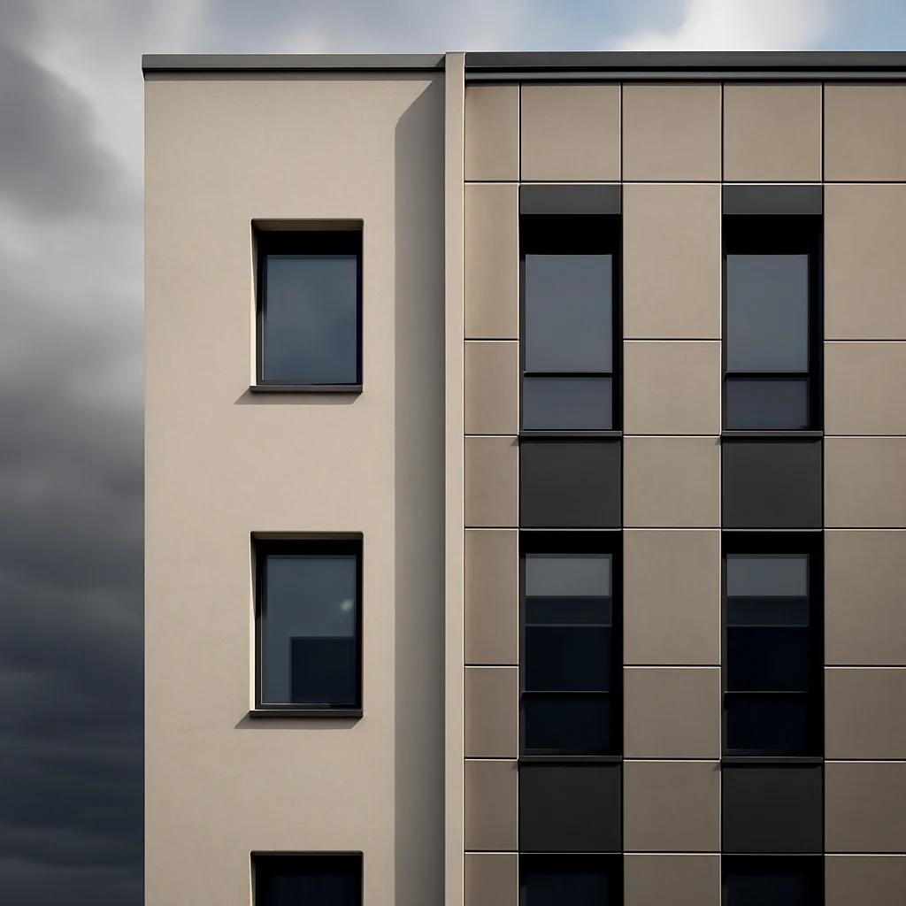 Stratul exterior poate fi realizat din plăci ceramice, compozite, metalice sau lemn, oferind flexibilitate în alegerea materialelor în funcție de aspectul dorit și buget. Alegerea materialului influențează aspectul estetic și performanțele clădirii.