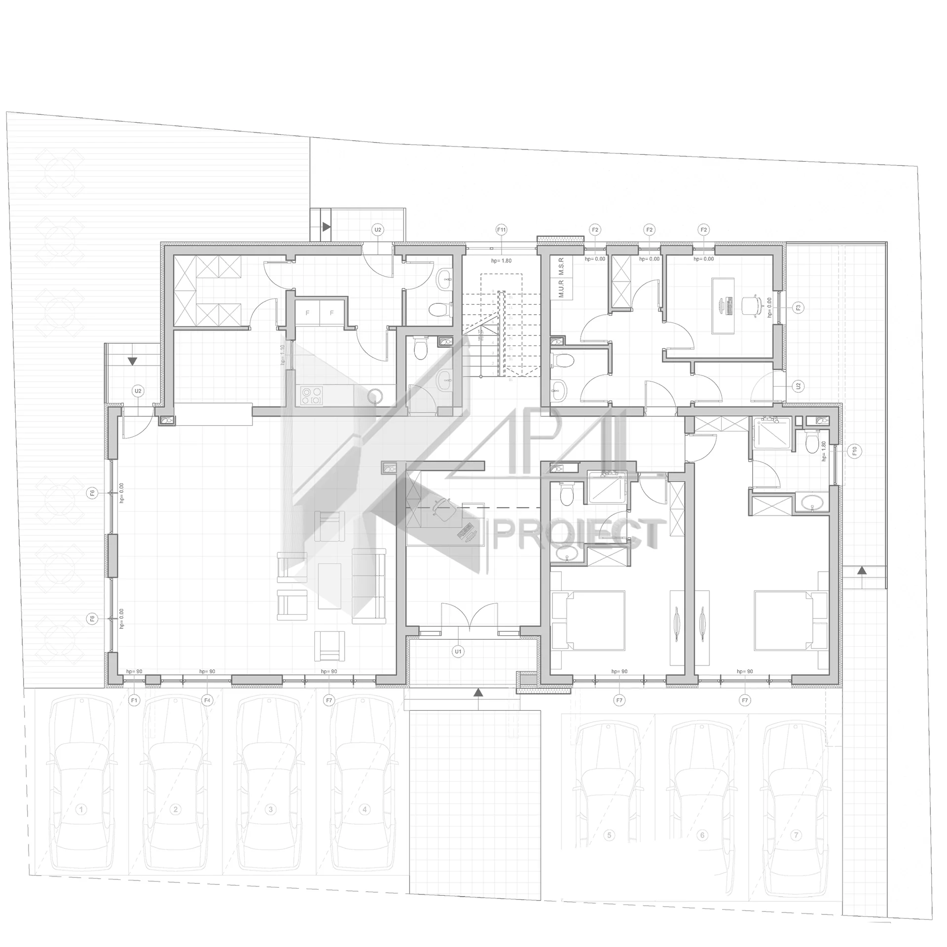 Birou cu acces separat (de pe o terasă exterioară): hol, grup sanitar, spații tehnice, birou – ideal pentru lucru în liniște sau recepția colaboratorilor fără a perturba zona de locuire.