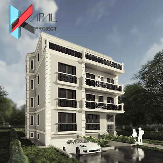 Arhitectura clasică este evidențiată prin utilizarea bosajelor la colțuri, ancadramentelor la ferestre, cornișelor profilate și pilastrilor, completate de balustrade din fier forjat. Finisajele în nuanțe deschise de alb și bej conferă eleganță și coerență ansamblului.