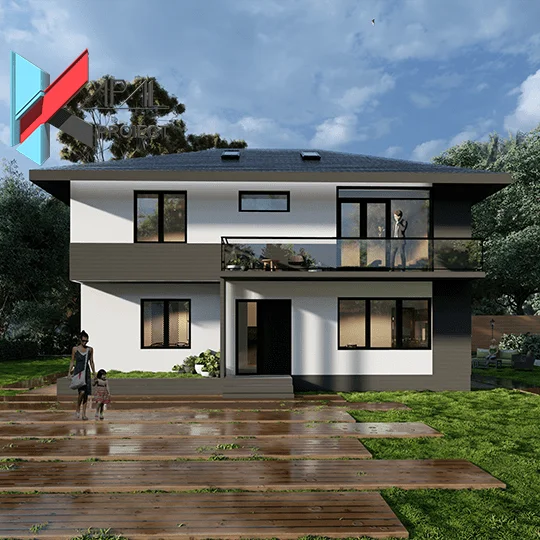 Această locuință modernă este concepută pentru o familie cu un copil, având dimensiuni reduse, o volumetrie simplă și o organizare funcțională eficientă pe regim de înălțime Parter + Etaj 1. Proiectul urmărește obținerea unui echilibru între confort, intimitate și economie de spațiu, printr-o compartimentare clară și bine optimizată.