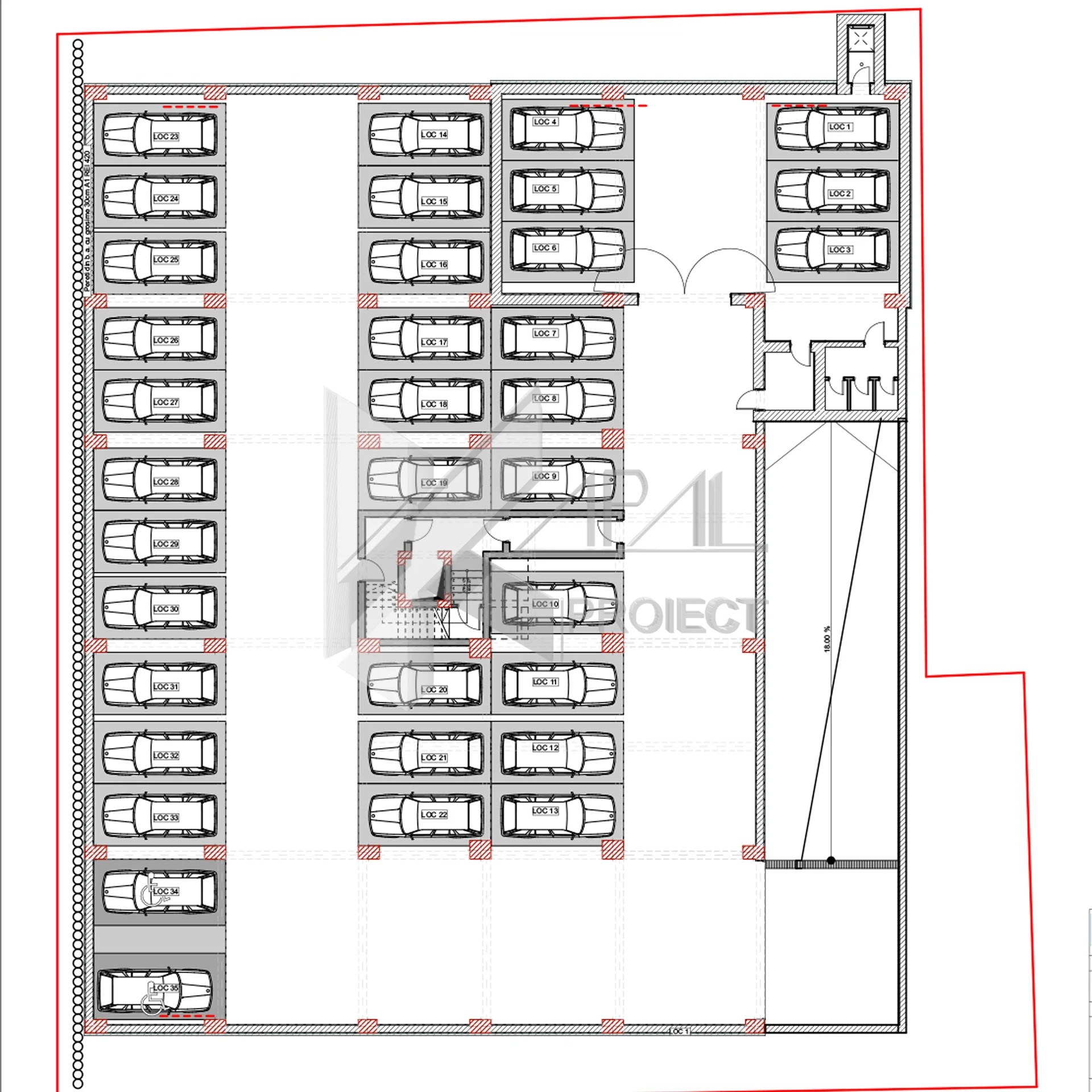 34 locuri de parcare marcate și dimensionate conform normativului; spații tehnice aferente.