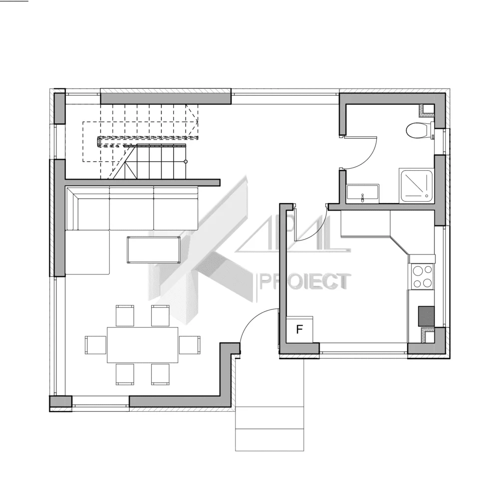 Plan Parter: hol intrare: 6,43 mp, cu acces direct către zona de zi și scara interioară (nodul vertical), living + zonă de luat masa: 21,57 mp, spațiu luminos, ideal pentru familie și oaspeți, bucătărie: 9,95 mp, separată funcțional, cu posibilitate de depozitare dedicată, baie: 4,39 mp, accesibilă pentru oaspeți și uz zilnic;