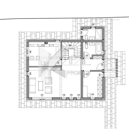 Nod vertical de circulație – scară către subsol și etaj.
