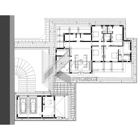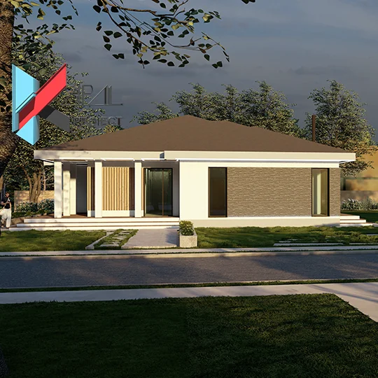 Această locuință individuală este concepută într-un limbaj arhitectural modern, caracterizat prin volume ample, linii curate și o relație puternică între interior și spațiile exterioare acoperite. Organizarea exclusiv pe parter asigură un grad ridicat de confort, accesibilitate și o funcționare eficientă a tuturor spațiilor.