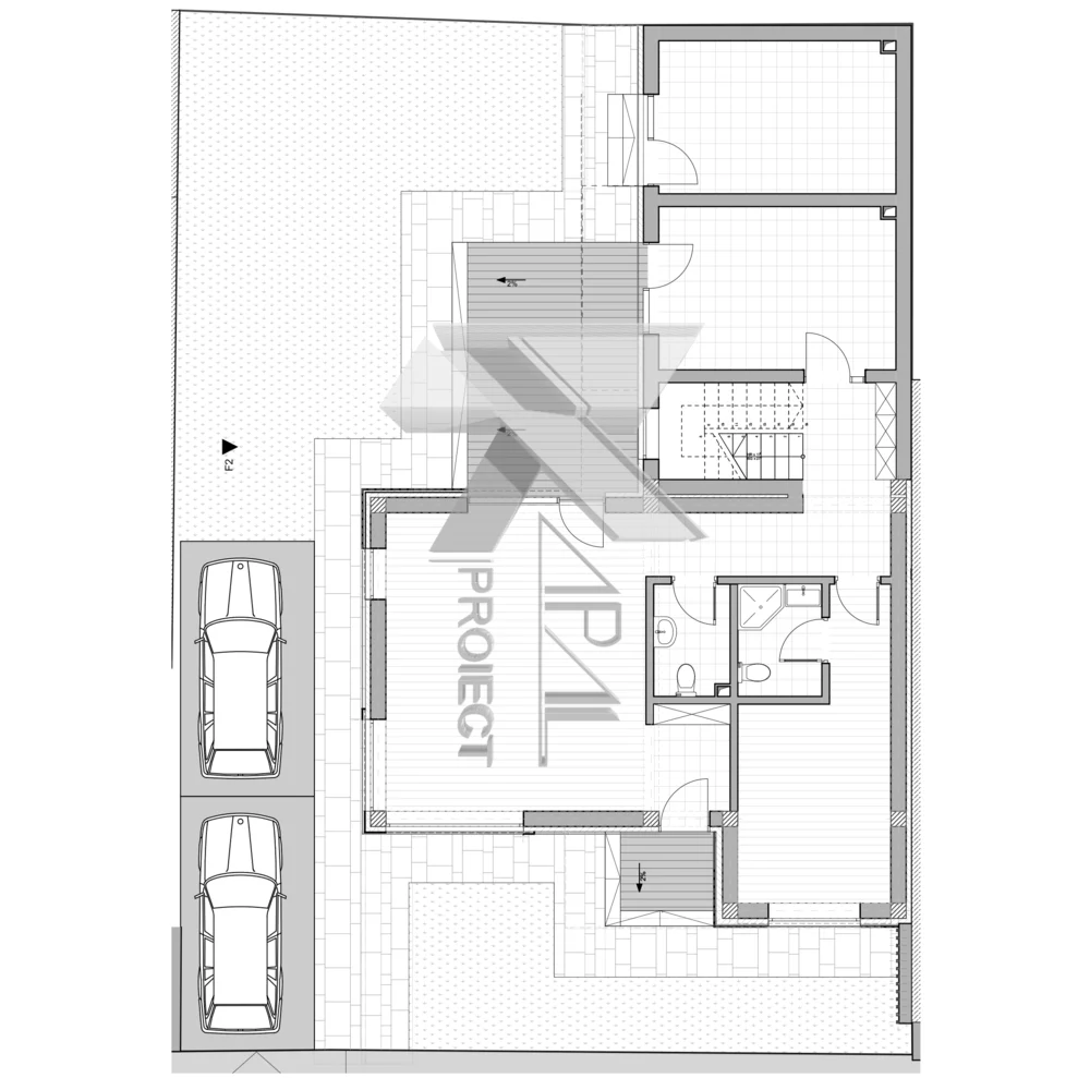 Acest proiect este o locuință individuală modernă cu regim P+1E, dezvoltată pe un plan în forma literei T pentru a separa clar zonele de zi de spațiile de noapte și pentru a crea o relație firească între interior și exterior. Corpul orientat spre stradă găzduiește zona de zi – un living generos cu loc de luat masa, bine conectat vizual la exterior prin goluri ample – iar corpul posterior include bucătăria, deservită de o terasă de 17,08 mp ce leagă natural diningul de grădină.