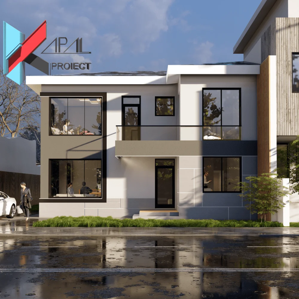Cromatica în tonuri de alb și gri închis, alături de placaje HPL gri și lemn stratificat cu vegetație (iederă), conferă volumelor o expresie contemporană, fresh, ușor de adaptat gusturilor beneficiarilor. Golurile generoase de ferestre aduc lumină din abundență, animând interioarele pe parcursul zilei. Cu amprentă la sol de 130,60 mp, suprafață desfășurată totală de 287,30 mp și utilă de 186,18 mp, casa propune un echilibru optim între funcționalitate, confort și estetică. Acoperișul tip șarpantă completează compoziția într-un limbaj coerent și elegant.