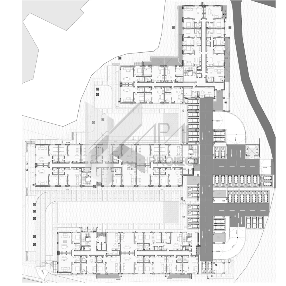La nivelul subsolurilor, ansamblul găzduiește 247 de locuri de parcare și o infrastructură tehnică completă (TEG/TEV, camere pompe și hidrofoare), inclusiv un adăpost de apărare civilă de 466,77 mp, cu grup sanitar dedicat și două tuneluri de evacuare. Deasupra, parterul și etajele 1–3 oferă 186 de apartamente (studio-uri, 2, 3 și 4 camere), toate sub 100 mp, cu scheme funcționale optimizate, zone de zi deschise (living + bucătărie), spații de depozitare bine dimensionate și balcoane/terase generoase. Acoperișurile sunt terase necirculabile, gândite pentru durabilitate în climat lacustru.