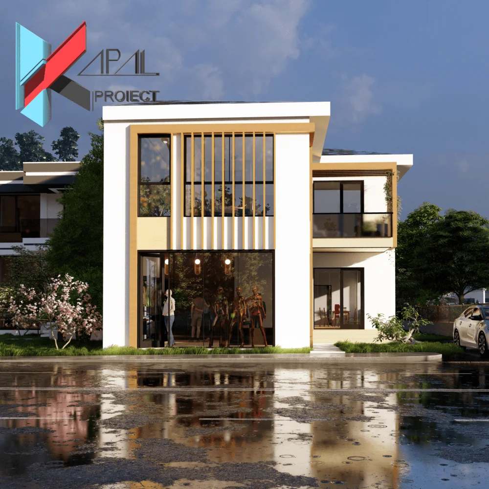 Această casă modernă este concepută ca o locuință cuplată, cu spațiu comercial la nivelul parterului și acces separat pentru zona rezidențială. Regimul de înălțime Parter + Etaj 1 asigură separarea clară între zona publică, zona de zi și zona de noapte.