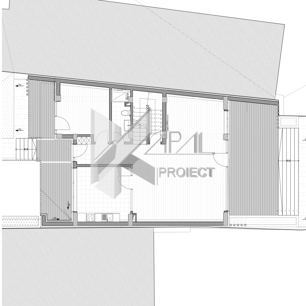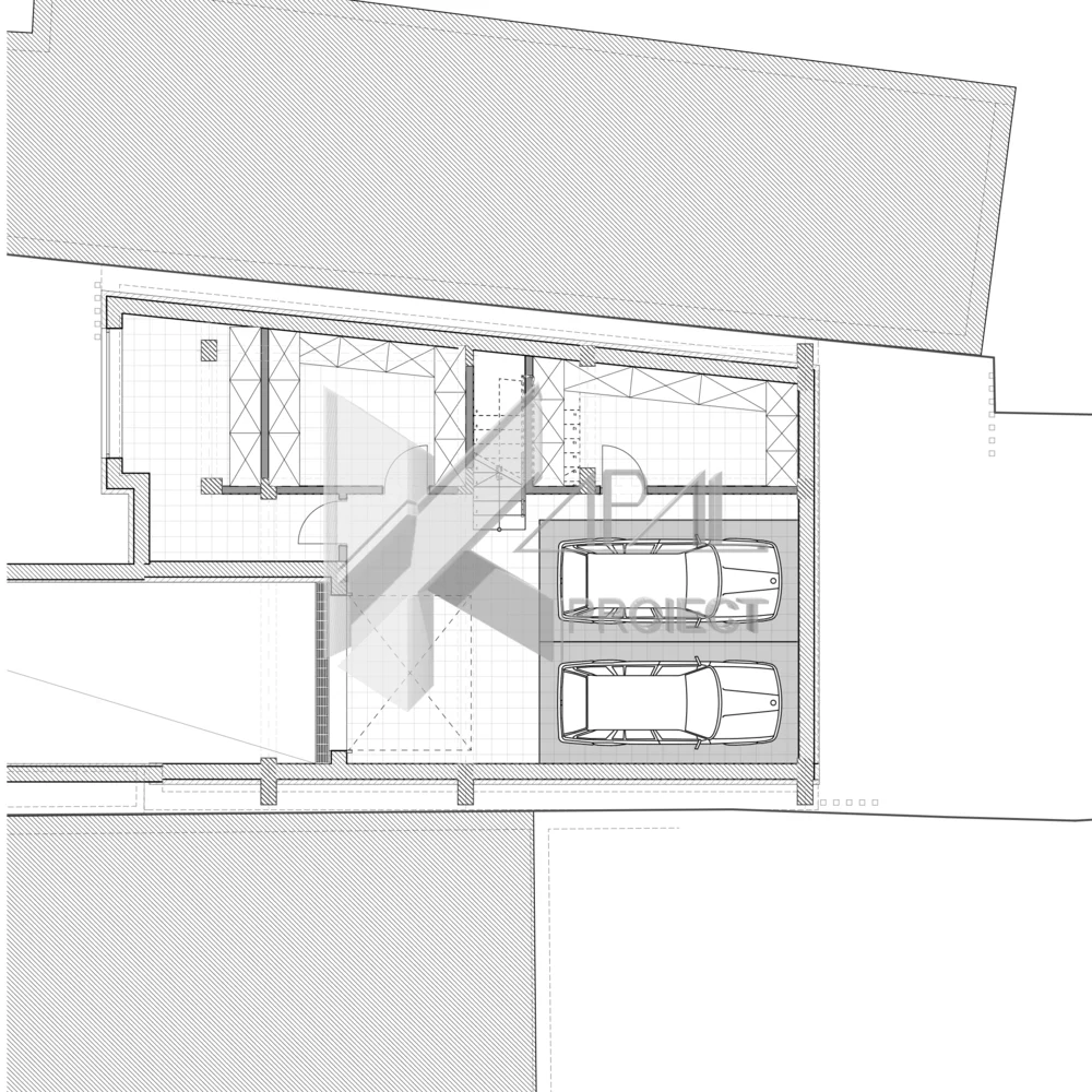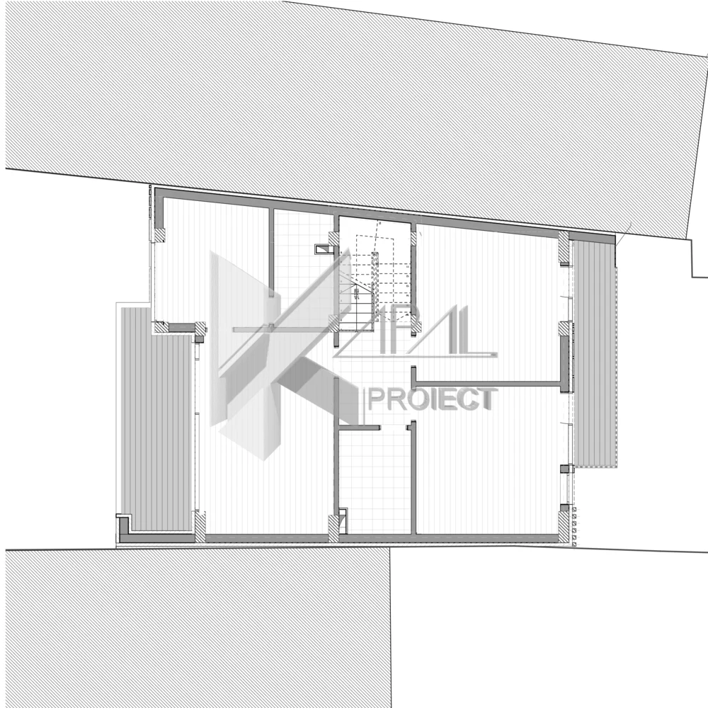 Acest proiect este o locuință în regim S+P+2E, concepută pentru aliniamente înșiruite și parcele înguste cu calcane laterale. Planimetria și poziționarea golurilor sunt optimizate pentru a exploata doar două fațade iluminate și ventilate natural, asigurând confort luminos și ventilare încrucișată acolo unde configurația o permite.