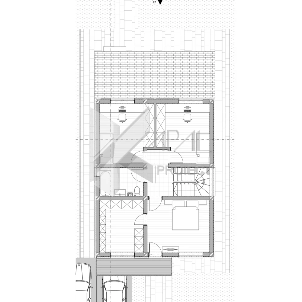 Această casă modernă este concepută ca o locuință familială cu regim de înălțime Parter + Etaj 1, având o organizare funcțională clară și o relație directă cu spațiul exterior prin terasa acoperită și foișorul amplasat în curte. Compartimentarea separă zona de zi de zona de noapte, oferind confort și intimitate.