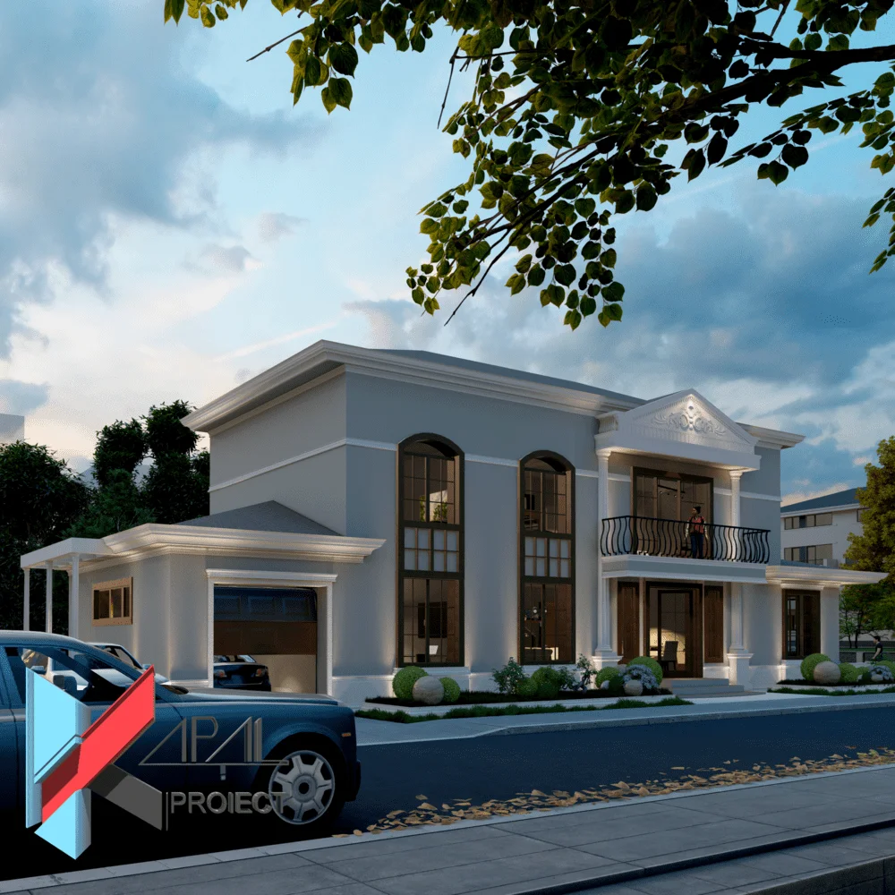 Această casă clasică este concepută ca o locuință impunătoare, cu regim de înălțime Subsol + Parter + Etaj 1, caracterizată printr-o arhitectură elegantă și o atenție deosebită acordată detaliilor. Volumetria este accentuată printr-un corp central înălțat, sugerând soliditate și monumentalitate.