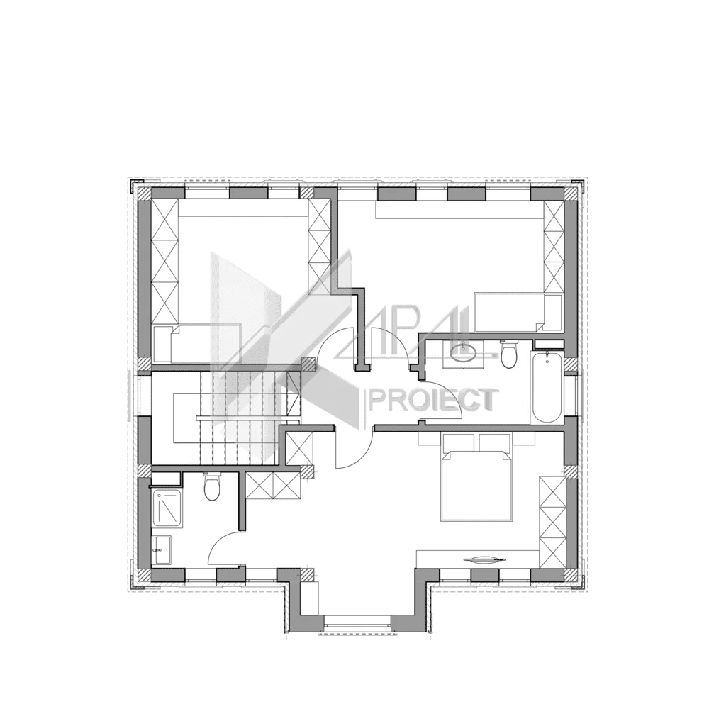 La exterior, texturile minerale și piatra se combină cu o paletă cromatică alb–gri–bej, susținând caracterul clasic și un aer contemporan, rafinat. Acoperișul tip șarpantă completează ansamblul, asigurând durabilitate și o imagine coerentă. Deși are dimensiuni reduse la sol (92,80 mp), casa oferă o compartimentare complexă și bine gândită pentru viața de zi cu zi: zona de zi la parter are legătură directă cu terasa de 25,00 mp, iar etajul reunește trei dormitoare și două băi, inclusiv o suită matrimonială.