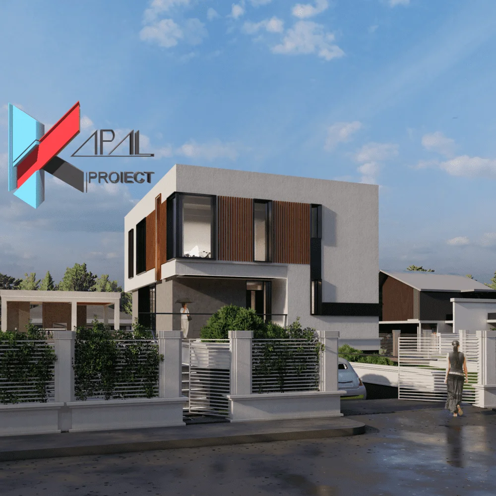 Se propune o locuință individuală modernă cu volumetrie compactă și o compartimentare extrem de eficientă, menită să maximizeze confortul fără pierderi de spațiu. Fațadele minimalist-contemporane adoptă o paletă alb-gri pusă în valoare de placajul TRESPA cu textură lemnoasă, conturând o imagine caldă și rafinată.