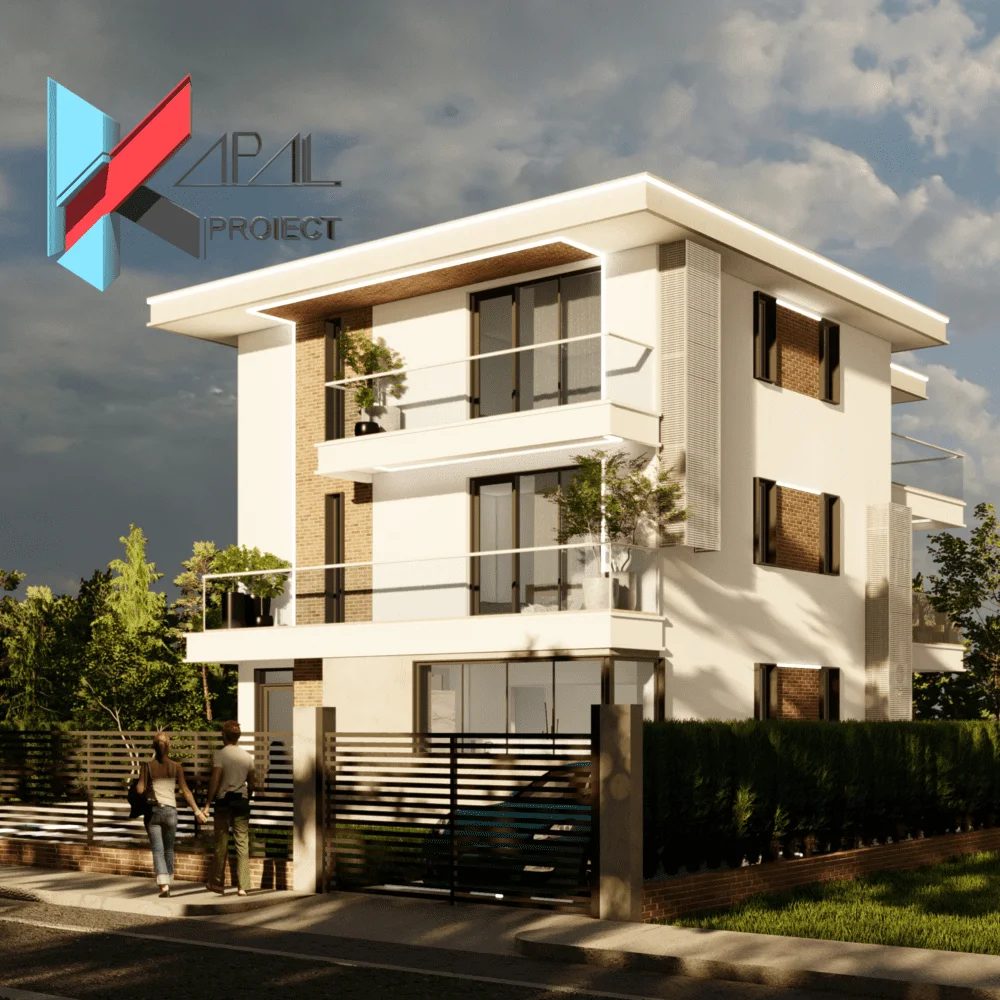 Această locuință modernă este concepută pentru o familie numeroasă, având regim de înălțime Subsol + Parter + 2 Etaje și o organizare funcțională clară. Volumetria este articulată astfel încât fiecare nivel să beneficieze de terase sau balcoane, asigurând o relație constantă între spațiile interioare și exterior.