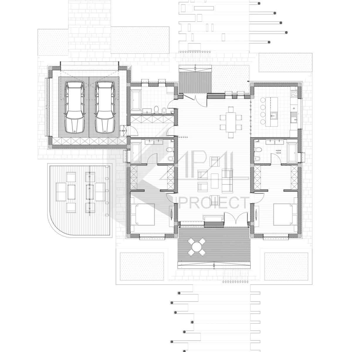 Prin dimensiunile compacte (21,05 × 14,30 m) și amprenta de 222,99 mp, K101 valorifică terenul eficient, iar suprafața utilă de 182,69 mp acoperă confortabil nevoile unei familii moderne. Rezultatul este o locuință cochetă, contemporană, cu o compartimentare intuitivă și spații exterioare care invită la petrecerea timpului împreună.