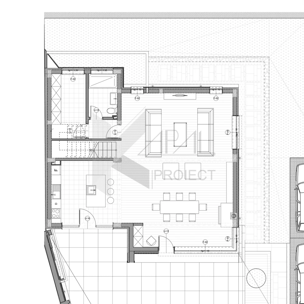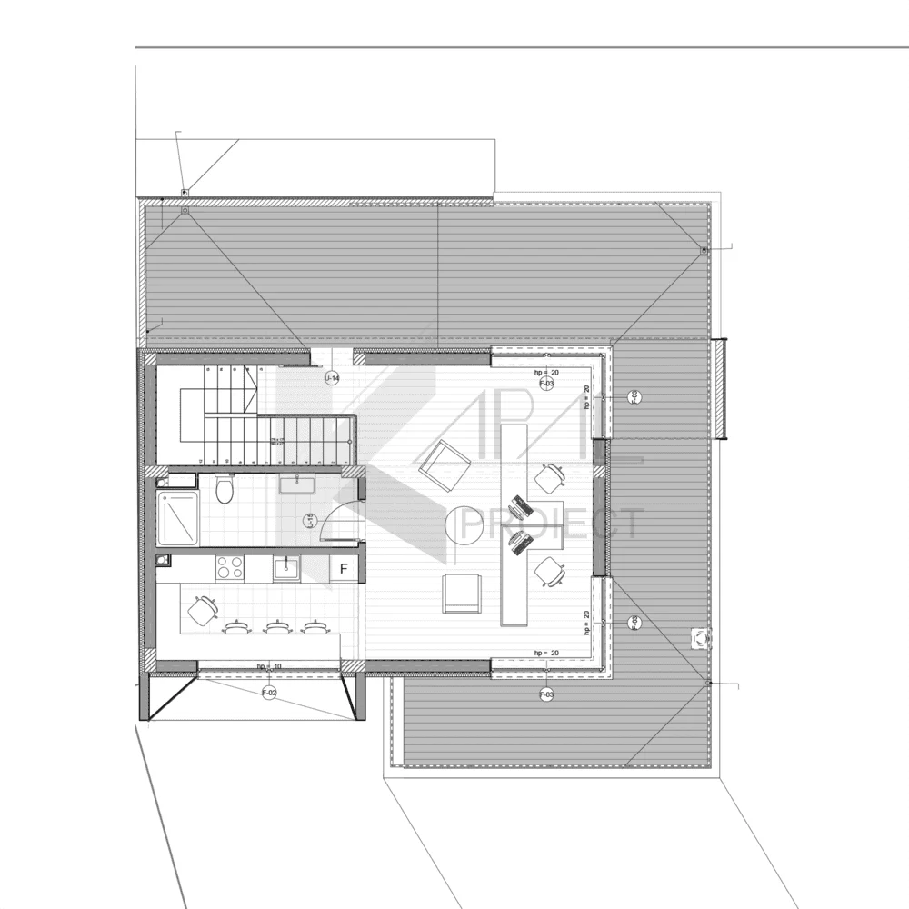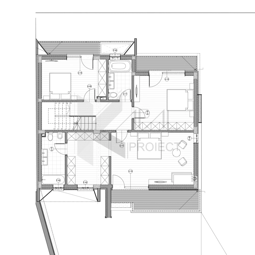 Parterul găzduiește zona cu caracter public și spațiile principale de zi, în timp ce etajele sunt dedicate zonei de noapte și activităților de lucru sau studiu. Organizarea pe verticală asigură separarea clară a fluxurilor și o utilizare eficientă a spațiilor.