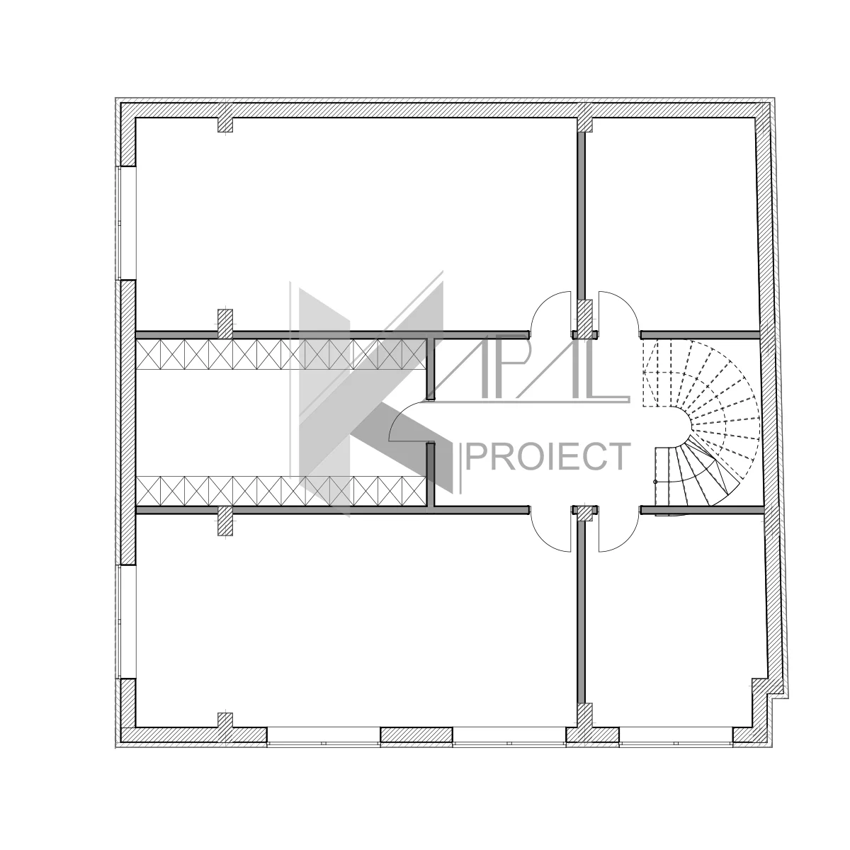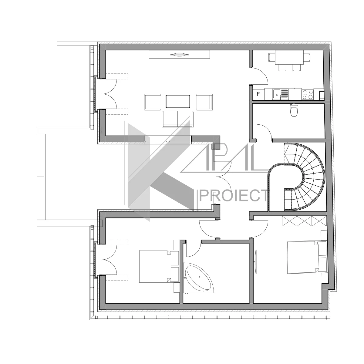 Structura pe șarpantă asigură o imagine clasică coerentă, iar golurile mari de ferestre aduc lumină naturală din abundență pe tot parcursul zilei. K117 este, astfel, o casă clasică cu funcțiuni contemporane, pregătită să răspundă nevoilor unei familii active.
