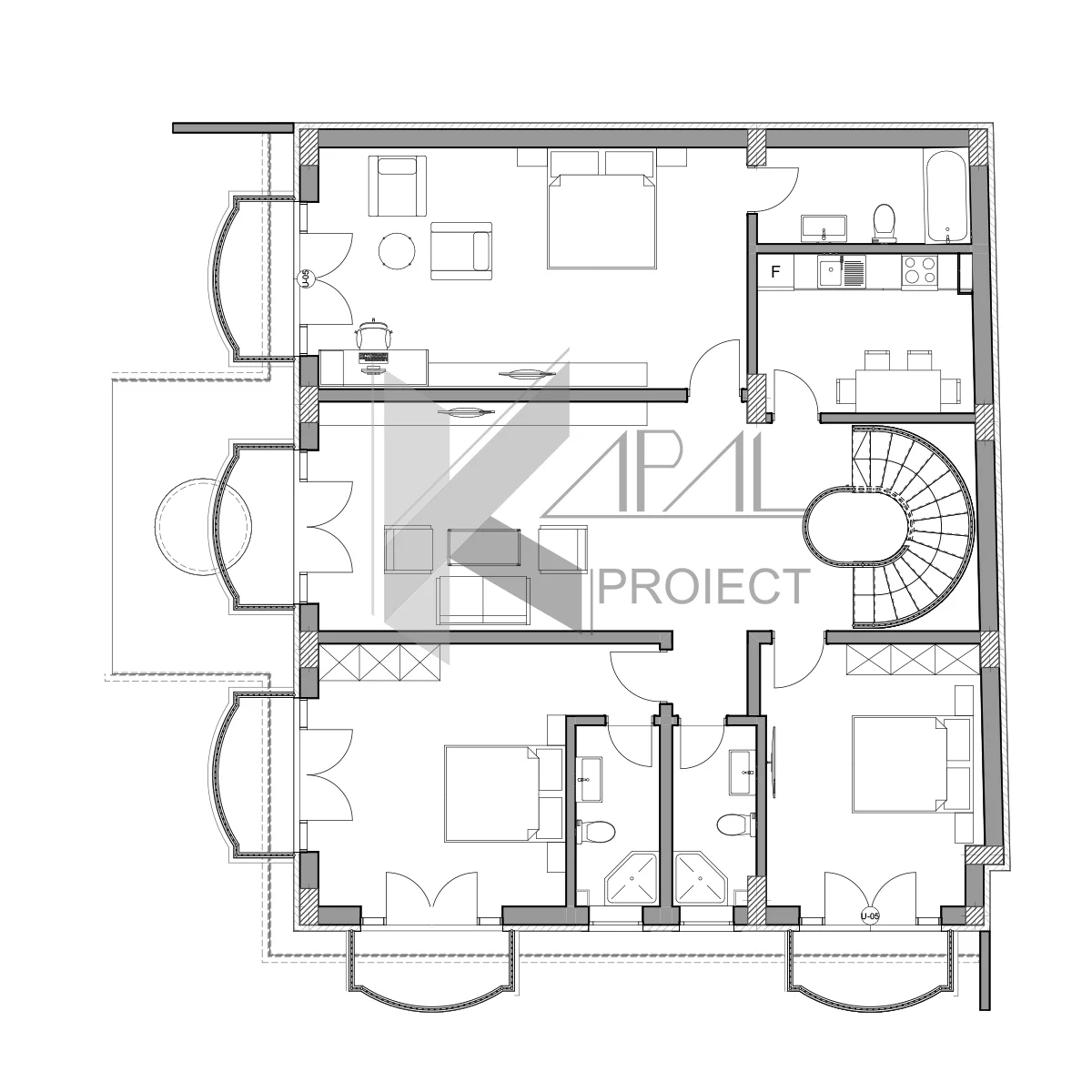 Proiectul propune o locuință clasică cu volumetrie echilibrată și detalii arhitecturale elegante, concepută pentru familii care își doresc spațiu, funcționalitate și o imagine atemporală. Regimul S+P+1E+M eficientizează suprafața utilă de 496,36 mp, oferind zone de zi ample, un birou pentru profesii liberale la parter și un nivel de intimitate ridicat prin cele 7 camere distribuite pe etaj și mansardă.