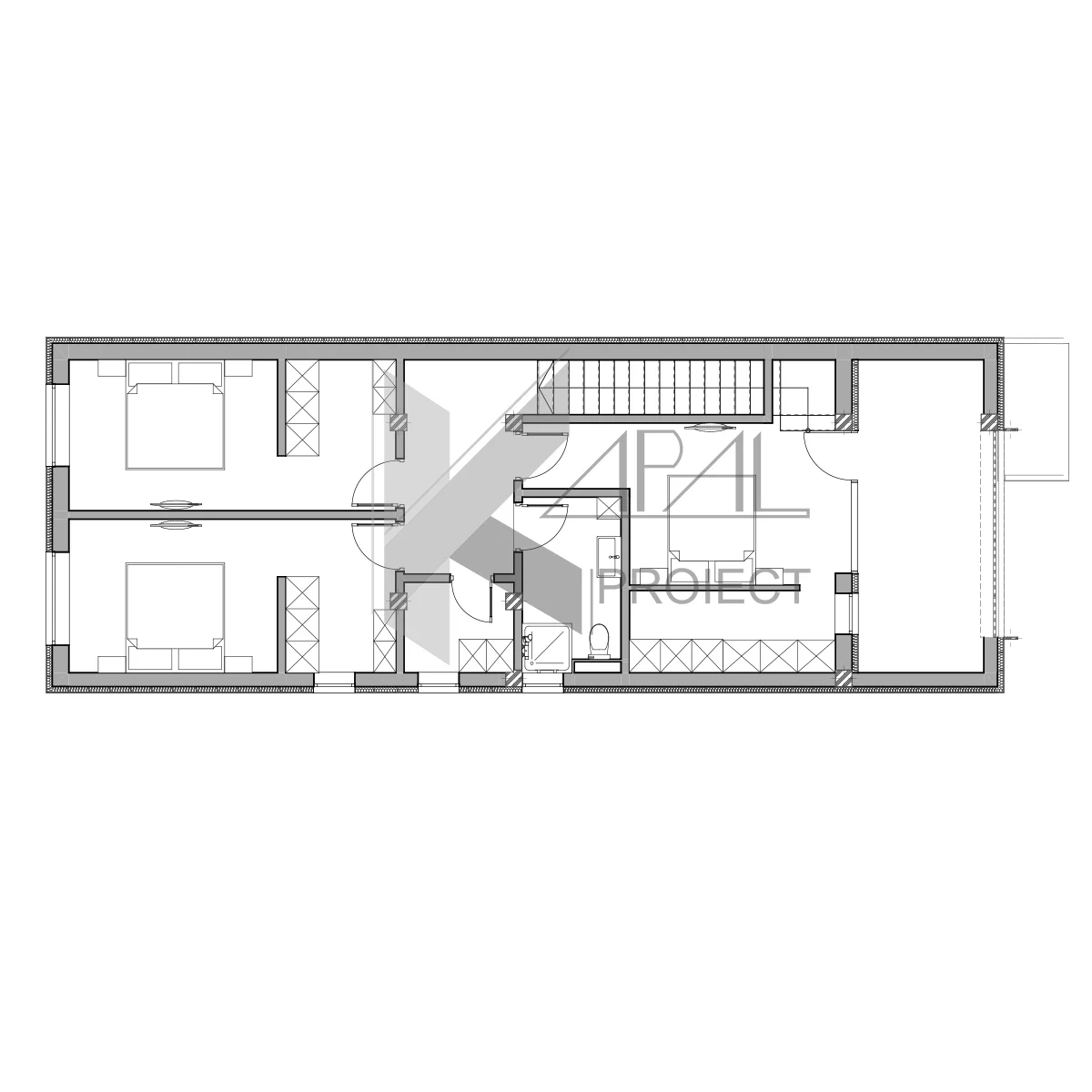 Etajul este dedicat zonei de noapte si este organizat in jurul unui hol de distributie de 8.11 mp. Aici sunt amplasate trei dormitoare, fiecare beneficiind de spatii proprii de dressing, oferind un plus de confort si depozitare. Dormitorul principal dispune de acces la un balcon generos de 14.37 mp, in timp ce nivelul este completat de o baie comuna si o zona suplimentara de depozitare.