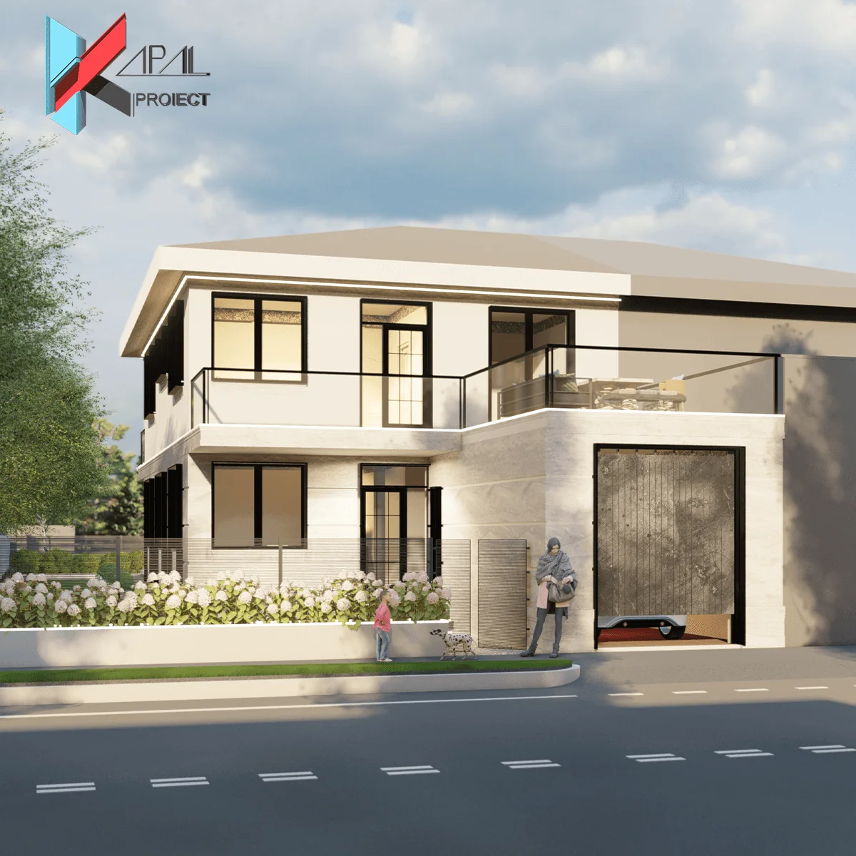 Locuință clasică tratată într-o notă modernă, în care proporțiile, ritmul golurilor și claritatea volumelor se combină cu un limbaj sobru, minimal. Fațadele din tencuială fină albă și inserțiile de travertin gri conturează o expresie contemporană, elegantă, completată de tâmplăria neagră și detaliile discrete ale balustradelor. Rezultă o arhitectură curată, fără ornament excesiv, în care accentul cade pe lumină, spațiu și funcționalitate.