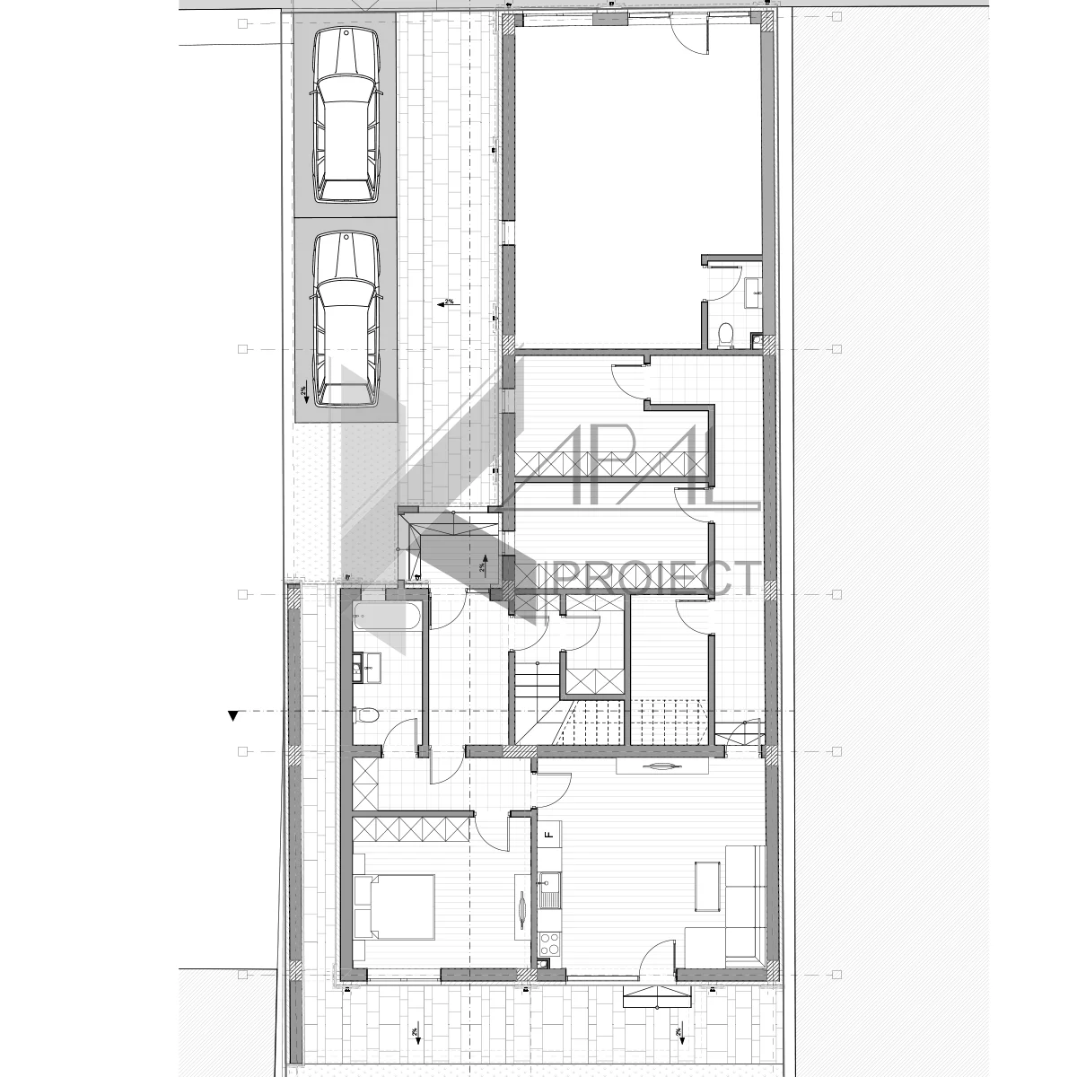 Proiectul propune o casă modernă cu regim de înălțime Parter + Etaj 1, care îmbină armonios funcțiunea rezidențială cu un spațiu comercial amplasat către stradă. Arhitectura clădirii este caracterizată de volume clare, gesturi minimaliste și o expresie contemporană, rezultând o locuință cu impact vizual puternic și identitate distinctă.