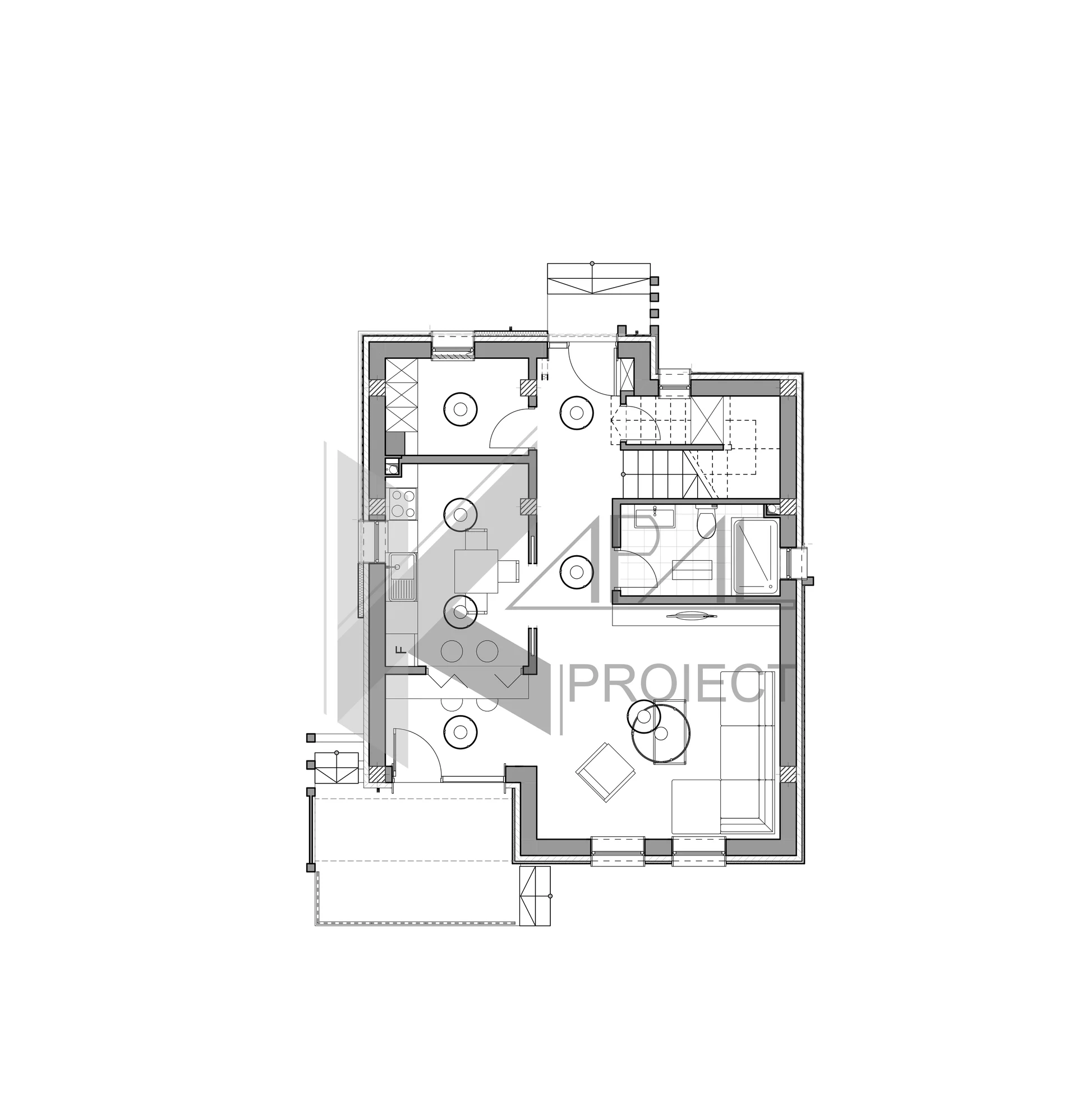 Dimensiunile compacte ale construcției o fac ideală pentru parcele urbane sau loturi înguste, menținând în același timp o funcționalitate ridicată și o compartimentare eficientă.